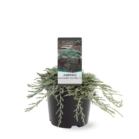 Juniperus horizontalis ‘Icee Blue’ (Jeneverbes) is een sterke cultivar welke goed gebruikt kan worden als bodembedekker. De loofkleur is opvallend diep grijs.